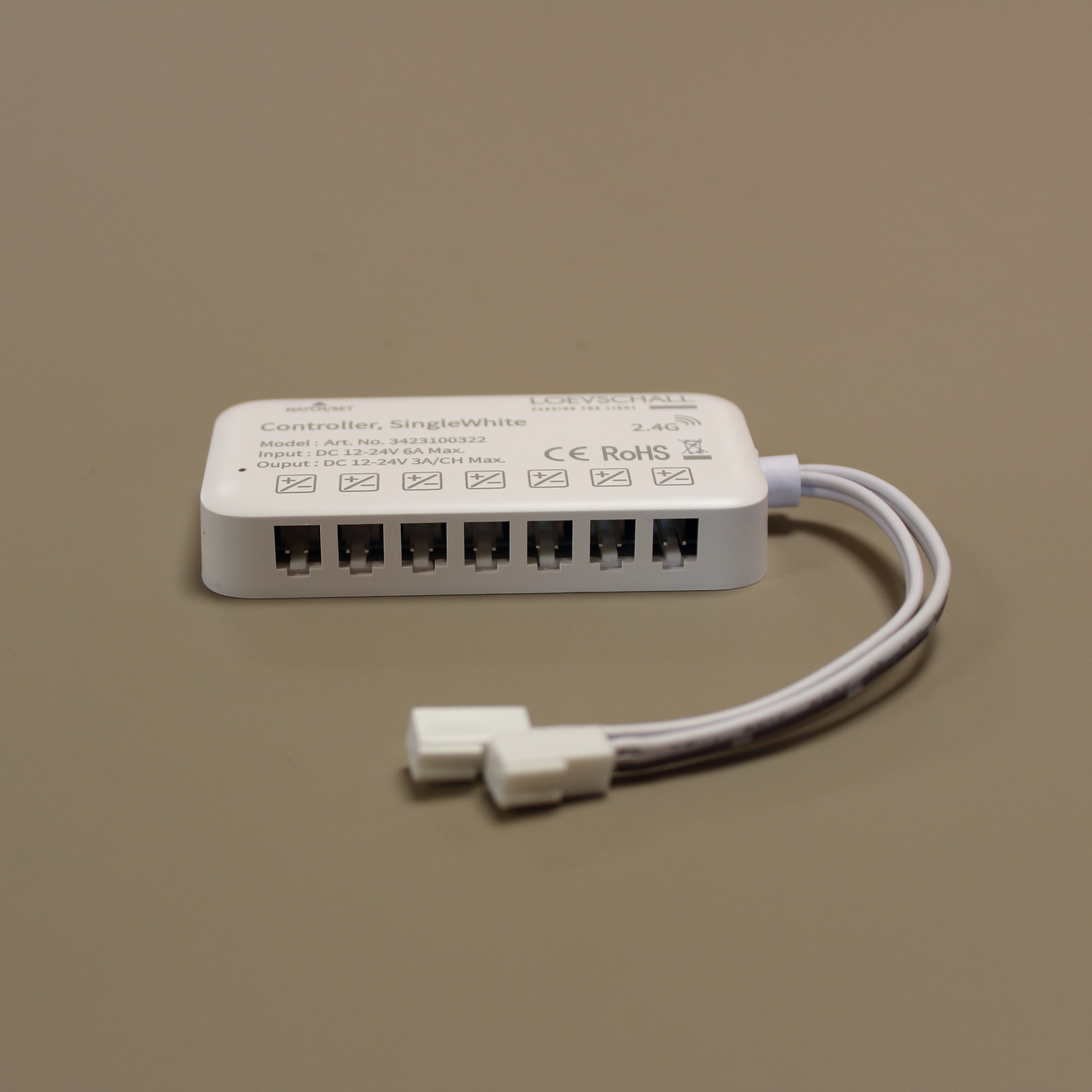 The CUE Control Kit SingleWhite contains both a remote control and a controller – connected and ready to use.
