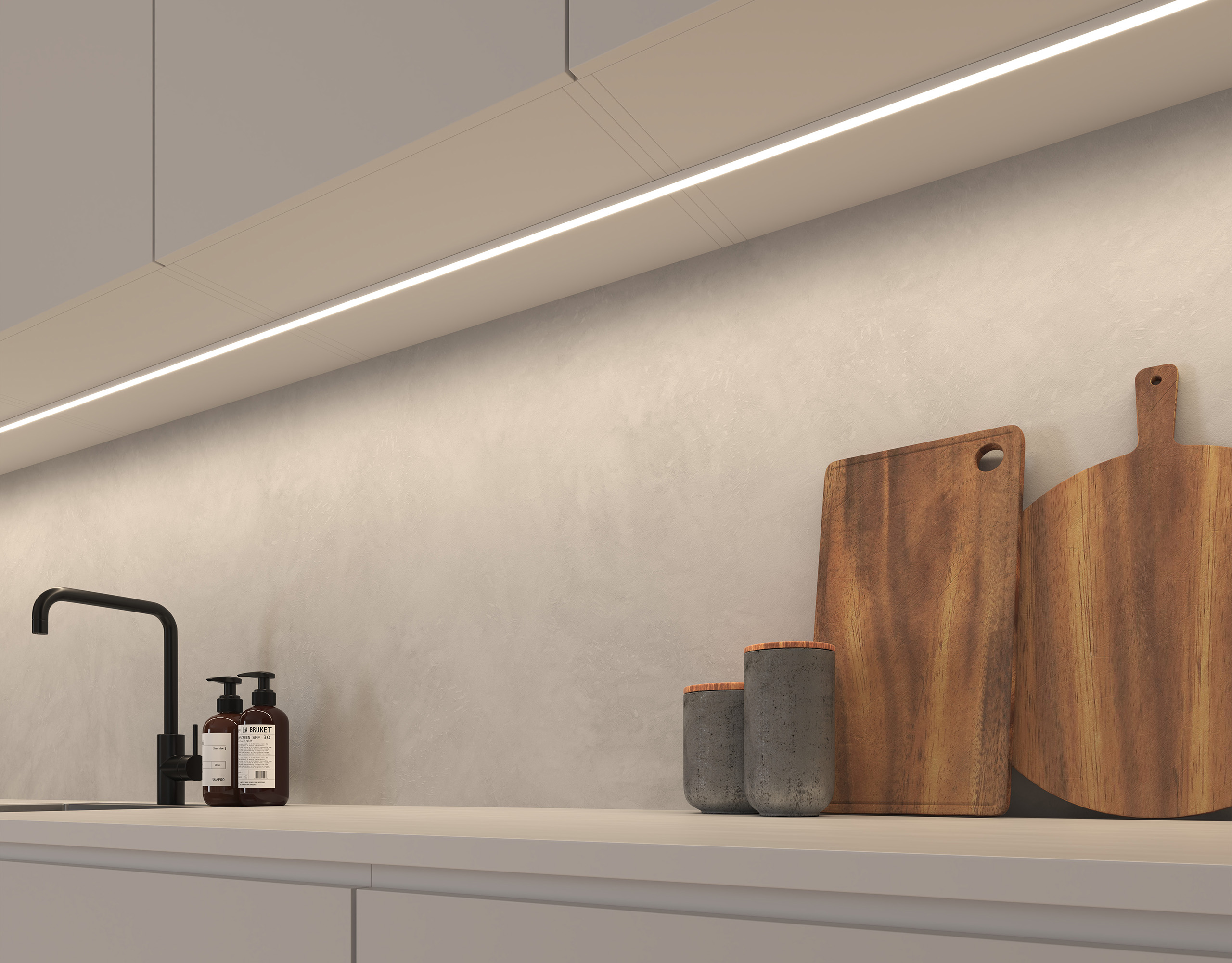 Linear light provides a beautiful, uniform light across the entire surface. Use LEDconnect under cabinets or shelves. LEDconnect can be easily retrofitted as the light source is placed on the surface. The system is easily adjusted to give you the exact length you need.